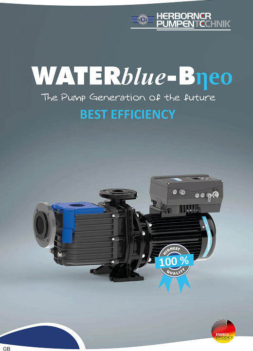 With regard to the European directives on eco-friendly energy use, we are combining our WATERblue-Bηeo pumps with permanent magnetic motors IE5 and specially customized frequency converters. IE5 currently corresponds to the highest energy efficiency class for motors, while the converter permits the optimum control of the system’s requirements. It is not possible to make pumps any more energy-optimised than these.